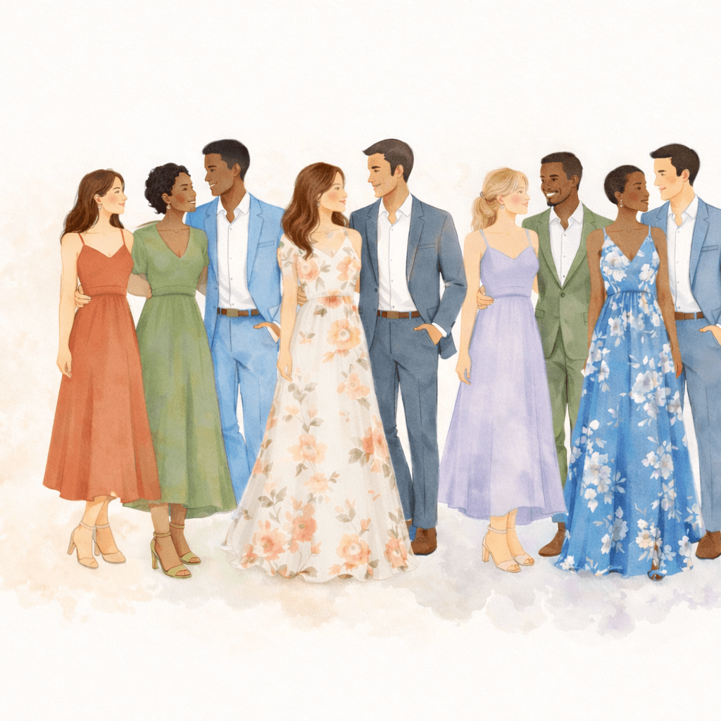 Pedimos com carinho para evitar branco, bege, off-white: reservados aos noivos.